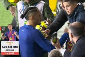 體育資訊12月22日訊 西甲第17輪比賽,巴薩在客場挑戰(zhàn)比利亞雷亞爾。本場比賽,拉菲尼亞點(diǎn)射為紅藍(lán)軍團(tuán)首開紀(jì)錄。賽后,拉菲尼亞被西甲官方評(píng)為全場最佳球員。