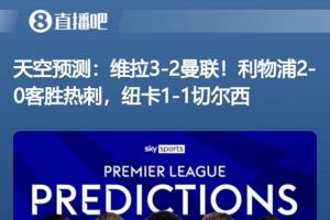 體育資訊12月22日訊 英超第17輪再賽一場,維拉2-1擊敗曼聯(lián),英國天空體育本輪預(yù)測繼續(xù)命中!