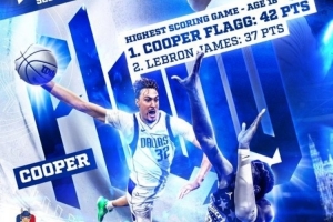 杜克官方曬出了弗拉格19歲前的幾項紀(jì)錄的數(shù)據(jù)海報: