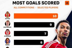 體育資訊12月23日訊 上周末英超第17輪比賽結(jié)束,英國(guó)媒體LiverScore列出了本賽季英超部分新援前鋒的進(jìn)球數(shù),?;倏舜蛉?0球排名第一。