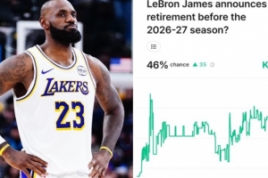 體育資訊12月24日訊 據(jù)美媒Kalshi Sports預(yù)測,最新消息顯示,勒布朗·詹姆斯有46%的可能性在下個賽季開始前宣布退役。他是否會不進(jìn)行告別巡演就直接退役呢?