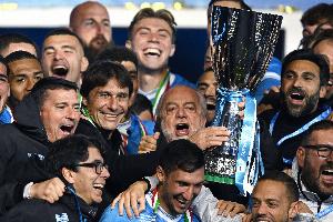 那不勒斯對孔蒂充滿熱情,德勞倫蒂斯的下一個(gè)目標(biāo)是開啟與這位教頭的合作周期??椎僭诓坏揭粋€(gè)半賽季的時(shí)間里,已經(jīng)為那不勒斯帶來了兩項(xiàng)冠軍。主席在利雅得之夜的言辭充滿激情,仿佛是對孔蒂的正式任命:“自1990年以后,我們再也沒有見過如此的雙冠成就,只有馬拉多納做到過?!?/p>