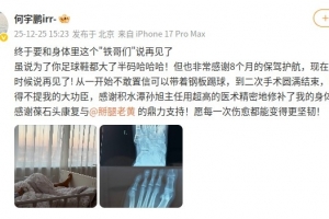 何宇鵬在社媒寫道:“終于要和身體里這個‘鐵哥們’說再見了,雖說為了你足球鞋都大了半碼哈哈哈!但也非常感謝8個月的保駕護(hù)航,現(xiàn)在,是時候說再見了!”