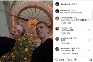 他曬出了一張與女友在圣誕樹前的搞怪自拍,并用加泰語以及德語寫道:“來自德國的圣誕快樂”。
