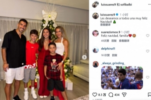 蘇亞雷斯寫道:“我們祝你們所有人圣誕節(jié)快樂!”