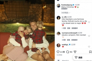 德容曬出了與妻子和兩個(gè)孩子的慶祝照,寫道:“圣誕快樂????”