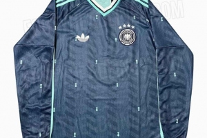 媒體曬出2026年世界杯德國隊長袖版客場球衣諜照,這款球衣由阿迪達(dá)斯設(shè)計,主色調(diào)為深海軍藍(lán),領(lǐng)口、袖口、三道杠則為薄荷綠。