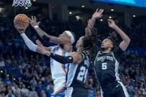 之后文班拉空,巴恩斯突哈騰;文班自己射中三分,哈珀利用文班的空間上籃,文班自己內(nèi)切上籃,106比91打停雷霆:比賽事實上結(jié)束。