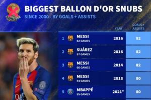 體育資訊09月24日訊 德國(guó)轉(zhuǎn)會(huì)市場(chǎng)盤點(diǎn)了各年份金球獎(jiǎng)數(shù)據(jù),排出了對(duì)應(yīng)年份中無(wú)緣金球獎(jiǎng)的最高進(jìn)球+助攻數(shù)據(jù)。以下是詳細(xì)排名。