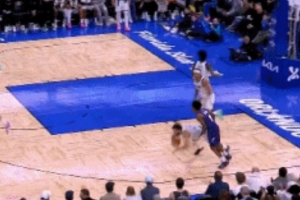 GIF-塞克斯頓突破上籃遭遇艾薩克正面大帽 隨后追尾送犯規(guī)