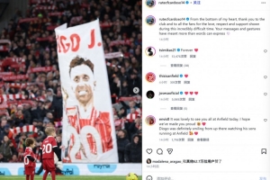 若塔的遺孀魯特爾也在賽后通過(guò)社媒曬出現(xiàn)場(chǎng)照表示感謝:“我由衷感謝俱樂(lè)部和所有球迷在這段無(wú)比艱難的時(shí)期所展現(xiàn)出的愛(ài)、尊重和支持。你們的留言以及行動(dòng)讓我感動(dòng)到難以用言語(yǔ)表達(dá)??”。