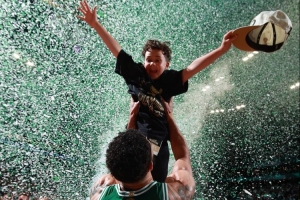 這個(gè)春天,杰森-塔圖姆躺在波士頓郊外母親家的沙發(fā)上,右腿上打著石膏。他看著7歲的兒子Deuce在iPad上回放籃球比賽的精彩瞬間。