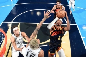 所以雖然雙塔組合夠強(qiáng),但兩人相對單一的功能,讓對方的內(nèi)線球員能夠更專注于同樣較為單一的工作內(nèi)容,把大部分防守注意力都集中在SGA等人的持球強(qiáng)攻上。