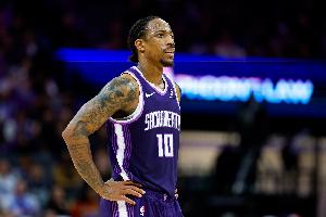 國王球員德羅贊是球隊主要進攻點,上半場他也打出不錯的進攻效率,但無奈其他隊友表現一般,依舊落后于對手。